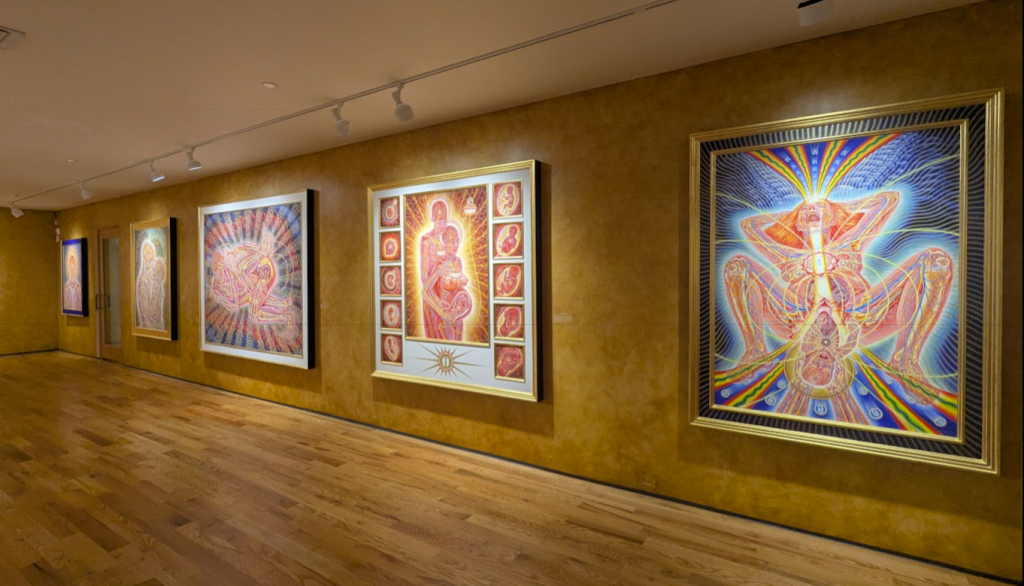 The Chapel of Sacred Mirrors represents the life’s work of pioneering visionary artists Alex and Allyson Grey. After outgrowing their New York City studio in 2009, the Greys moved to the small town of Wappingers Falls in the Hudson Valley.