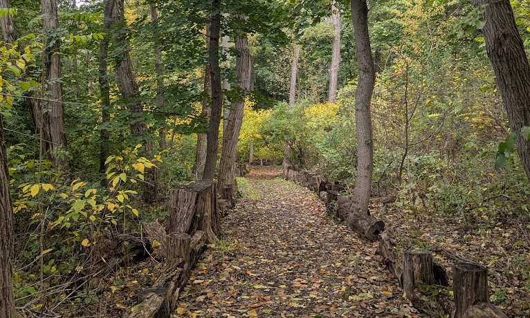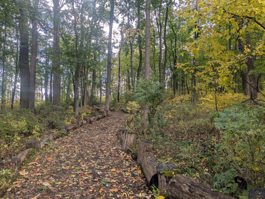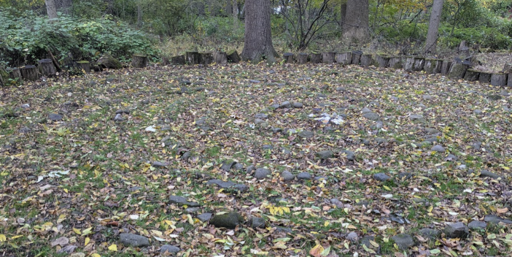 The stones marking the labyrinth were almost buried by fallen leaves, but it was still walkable.