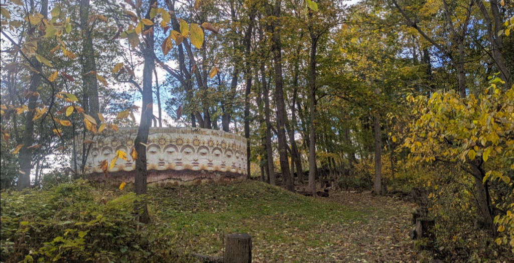 CoSM is now a campus-like arrangement in the woods, including the Grey House – a huge, 1860s-vintage mansion; Entheon, a combination transdenominational temple, museum and art gallery; and a nature/art walk called the Wisdom Trail, as well as administrative buildings, studio spaces and a large outdoor ritual area.