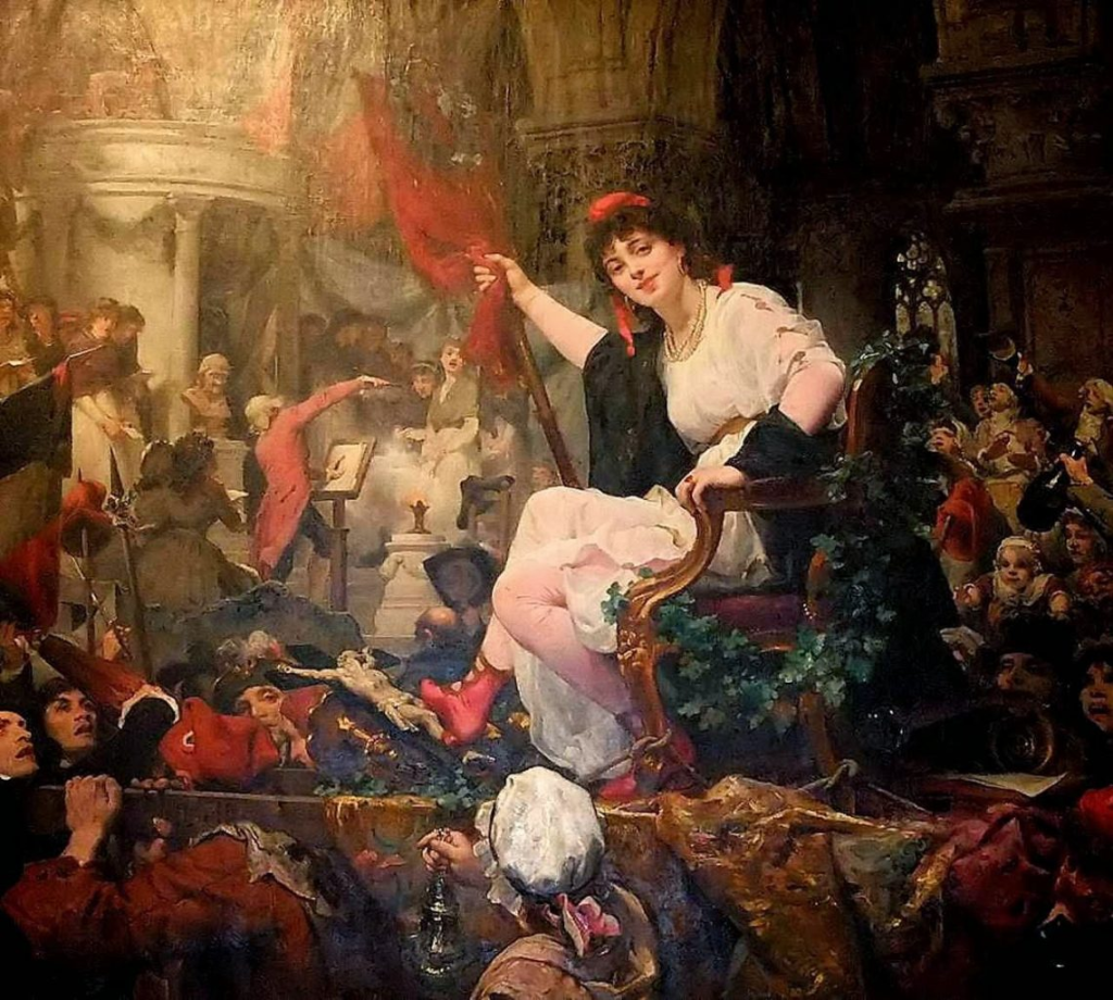 During the Cult’s roughly year-long heyday, many formerly Catholic churches were renamed and repurposed as “Temples of Reason,” including Notre Dame Cathedral in Paris, which hosted a grand “Festival of Reason” on the 10th of November, 1793. Inspired by the aesthetics of ancient Roman
